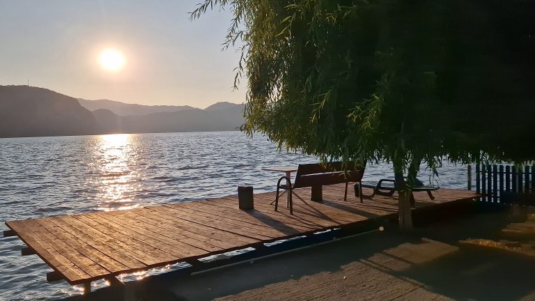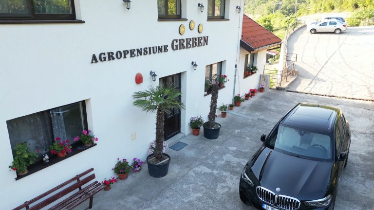 Numele pensiunii vine de la „pintenul” de stâncă de pe malul sârbesc, numit Greben, ce intră mult în Dunăre, formând un golf în care s-a aflat, până la construirea hidrocentralei porțile de Fier, insula Poreci, inundată de apele lacului de acumulare format. Istoria spune că pe această insulă s-ar fi născut vestitul haiduc Baba Novak.